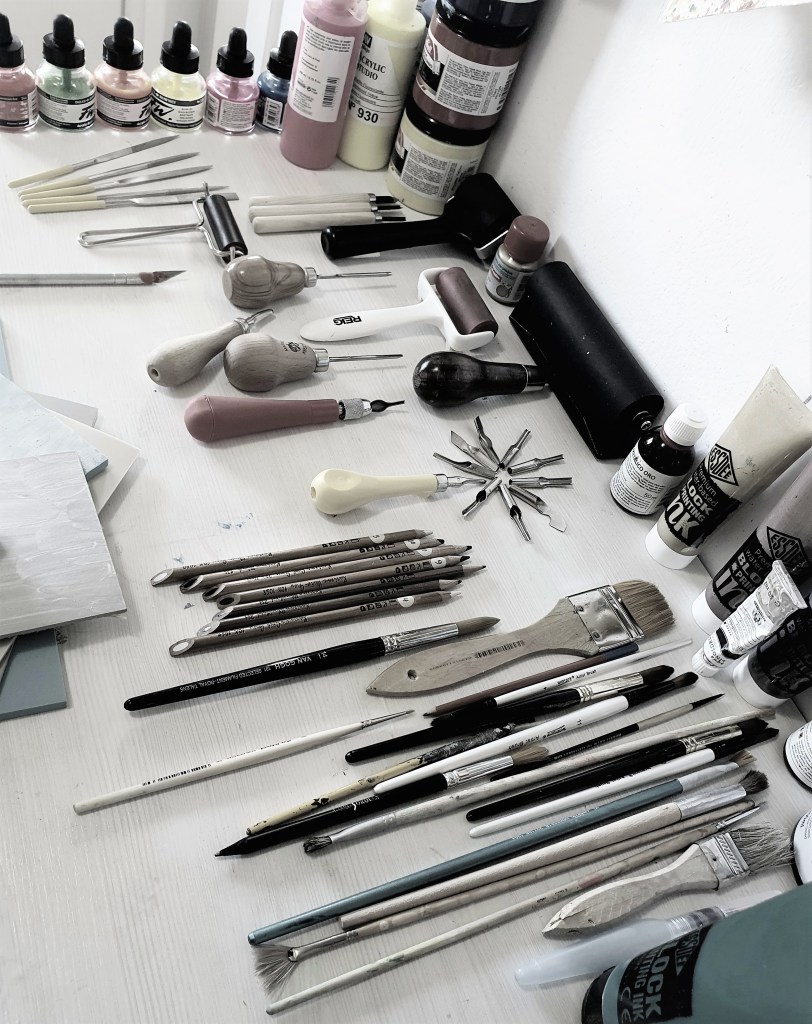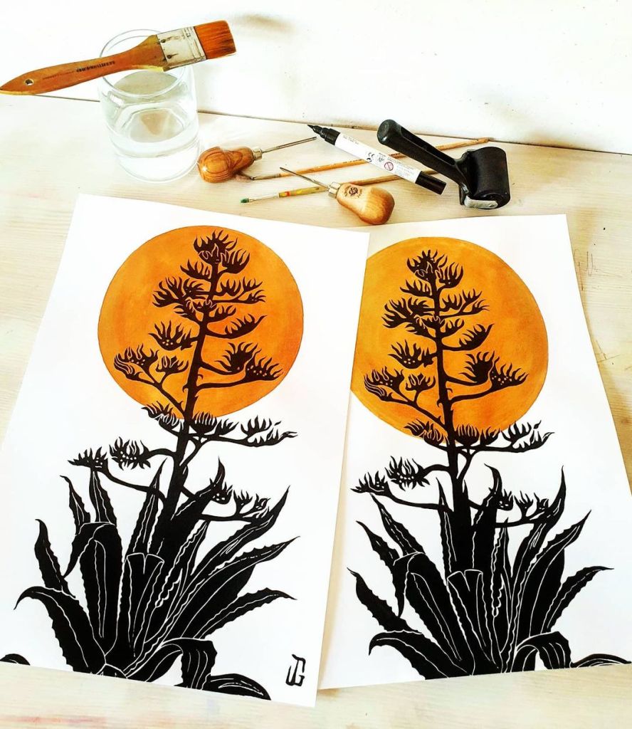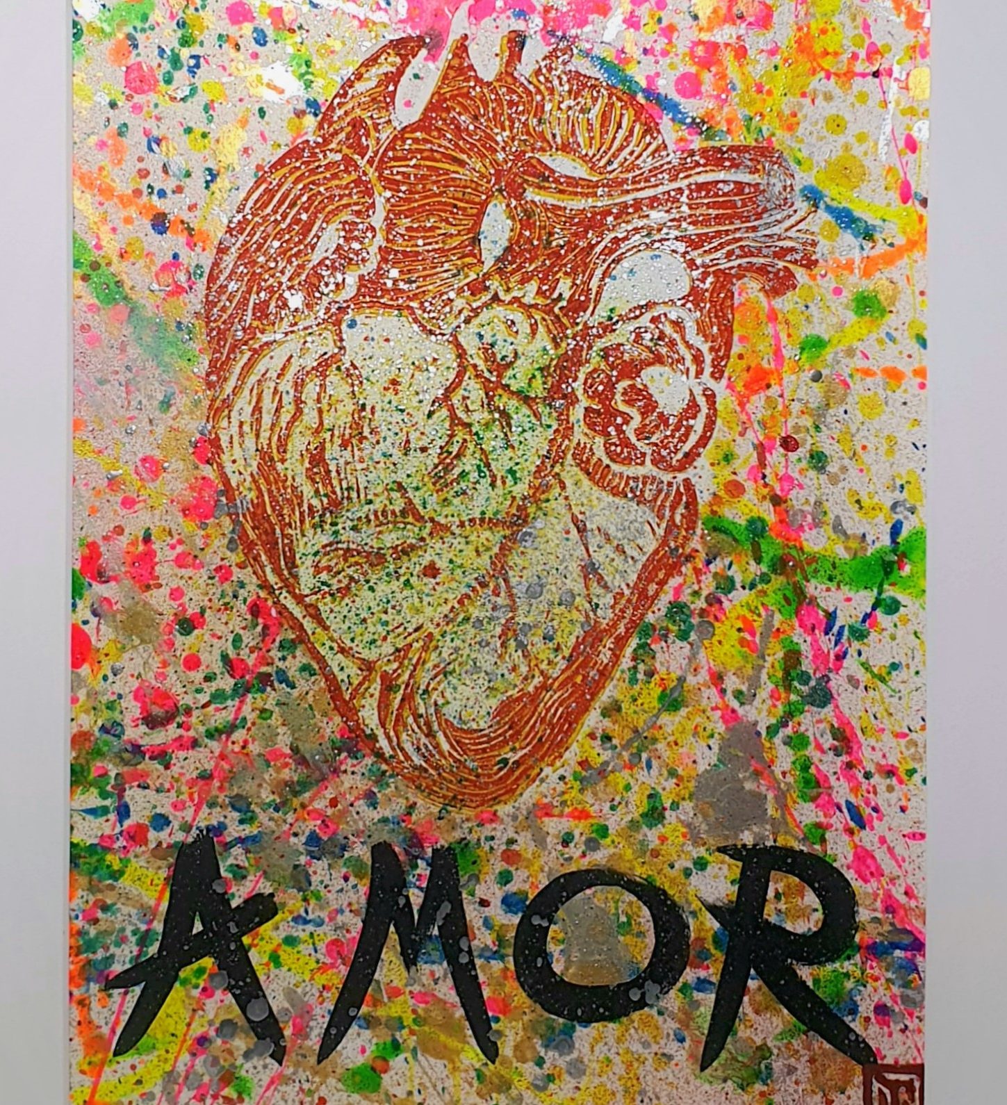 En este espacio encontrará algunas creaciones materializadas mediante diversas técnicas y metodologías. Sus proyectos se basan principalmente en el movimiento gestual logrando formas de gran fuerza y atracción, sus llamativos pigmentos y cromatísmos emergen de las emociones más profundas de la artista. En su trabajo incorpora todo tipo de herramientas tradicionales, así como dispositivos mecánicos experimentales, incluyendo el tratamiento con resina. Atraída por la contemporaneidad del siglo XX, trabaja el Arte-Pop a través del linograbado, enfocando su trayectoria hacia el «Fake Art» como un movimiento artístico original y auténtico.